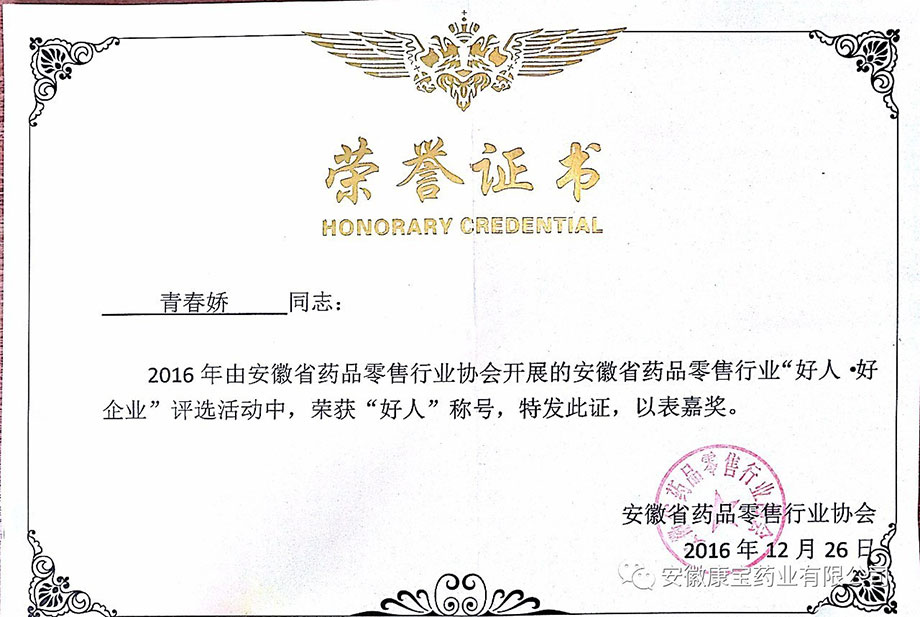 安徽康寶藥業(yè)有限公司以榮譽(yù)為起點(diǎn) 化榮譽(yù)為動(dòng)力安徽康寶藥業(yè)有限公司在省“好人 好企業(yè)”評(píng)選活動(dòng)中榮獲多項(xiàng)殊榮