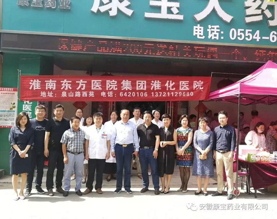 為保證店慶活動順利進行,醫院集團董事長江鴻方在百忙之中抽出時間參加店慶活動。廣濟醫院的倪院長、謝一醫院的譚院長、淮化醫院的方院長也早早的來到藥店,組織開展免費義診,給予大力支持。