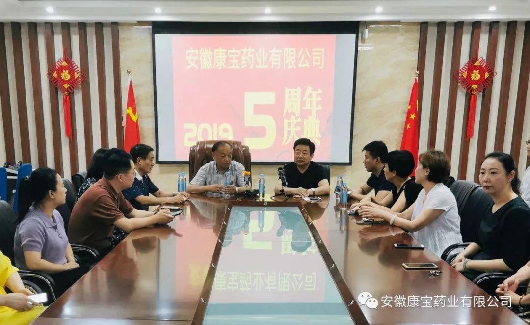 2019年9月10日下午,淮南東方醫院集團全資子公司康寶藥業在公司會議中心舉行隆重而簡樸的五周年慶典活動。東方醫院集團黨委書記、董事長江鴻方,集團董事、康寶藥業董事長朱興林出席了慶典。慶典由朱興林書記主持。