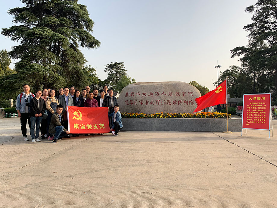 2019年10月29日下午,康寶黨支部開展“不忘初心,牢記使命”主題的教育工作,組織黨員前往淮南市“大通萬人坑教育館”接受愛國主義教育。參觀前,在紀念館門口康寶黨支部書記段松穎同志帶領(lǐng)全體黨員對著黨旗,重溫入黨誓詞,堅定不忘初心,牢記使命的理想信念。